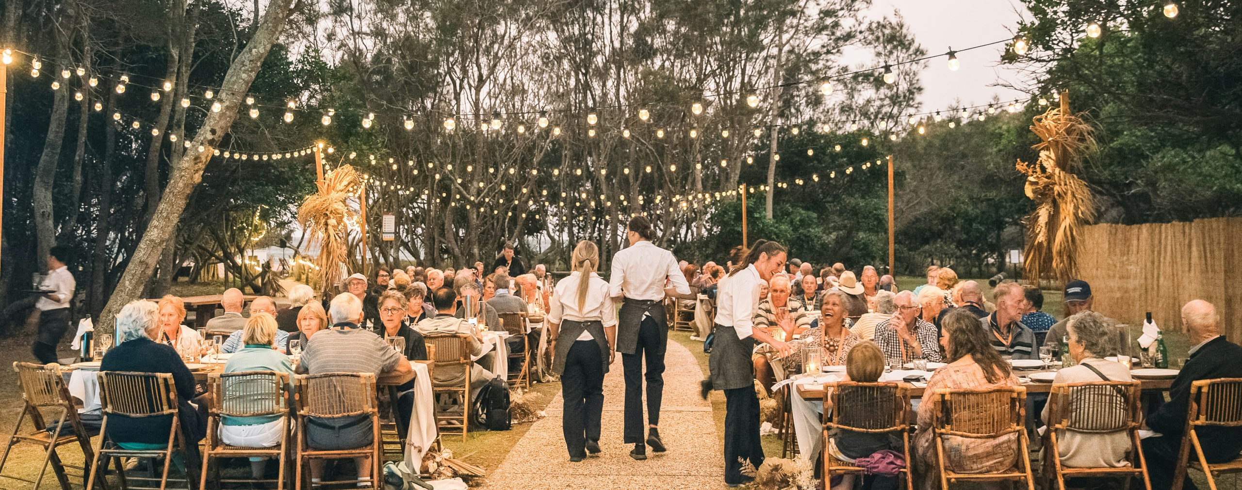 The coastal town of Coffs Harbour is not only blessed with a string of idyllic beaches, backed by a hinterland laced with World Heritage-listed rainforest. This laidback town is all about the great outdoors, and your al fresco dinner setting couldn’t get any more fitting. Think tables festooned with crisp white tablecloths and enormous bouquets of native flowers, all set under the glow of fairy lights strung between trees.